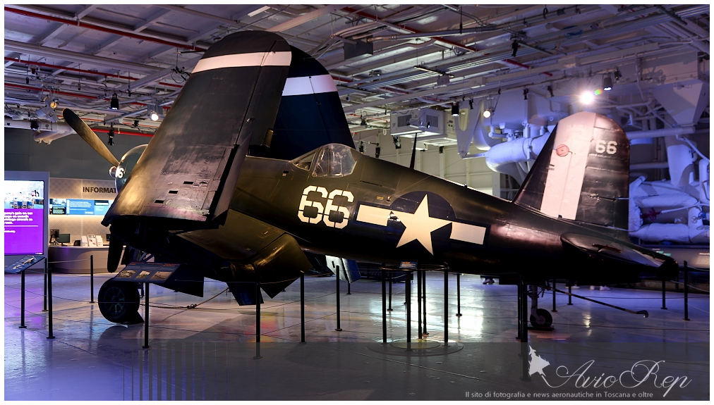 L'hangar sottocoperta espone i velivoli più vecchi e, per ovvi motivi logistici, di minori dimensioni. Si viene accolti all'entrata da uno splendido esemplare di FG-1D, versione costruita su licenza dalla Goodyear del celeberrimo Vought F4U-1 Corsair, modello che ha operato dalla Intrepid durante le ultime fasi del secondo conflitto mondiale insieme al Grumman TBM Avenger, anche esso presente ed esposto nei colori del Torpedo Squadron 18 (VT-18) ed impressionante per la sua mole. |