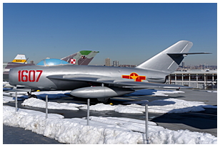 Molto interessanti anche due esemplari di Mig, un Mig-21 PFM ed un PZL-Mielec Lim-5, copia prodotta su licenza in Polonia del Mig-17, recentemente restaurati e riverniciati a rappresentare rispettivamente un velivolo appartenente al 10° Reggimento Caccia Intercettori della aeronautica polacca, da cui proviene l'esemplare esposto, e un velivolo delle forze aeree del Vietnam del Nord. |