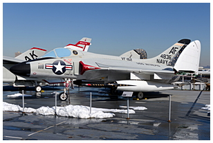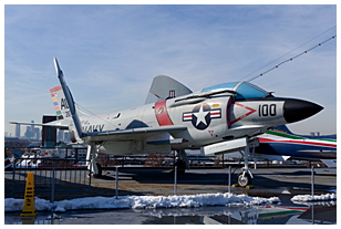 Di particolare interesse anche uno dei prototipi del massiccio bombardiere ad elica Douglas AD-1 Skyraider (designato in origine XBT2D-1 Dauntless II), così come un caccia Douglas F4D Skyray esposto nei colori del VF-162, che ha operato tra il 1961 e il 1962 dalla Intrepid, ed un raro McDonnell F-3B Demon, velivolo sviluppato a metà anni '50 e da cui si è poi evoluto il ben più prestante F-4 Phantom, presentato con la livrea del VF-41 imbarcato sulla USS Independence. |
