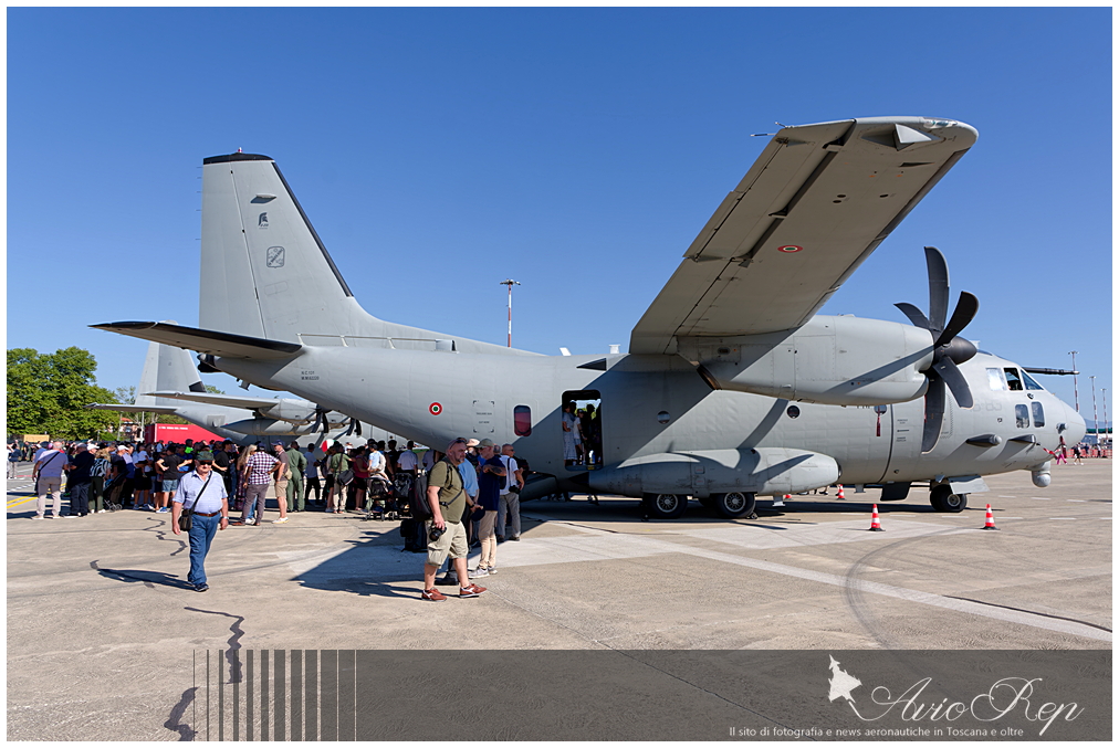 La lunga fila di appassionati che attende di visitare l'interno del C-27J in dotazione alla Brigata