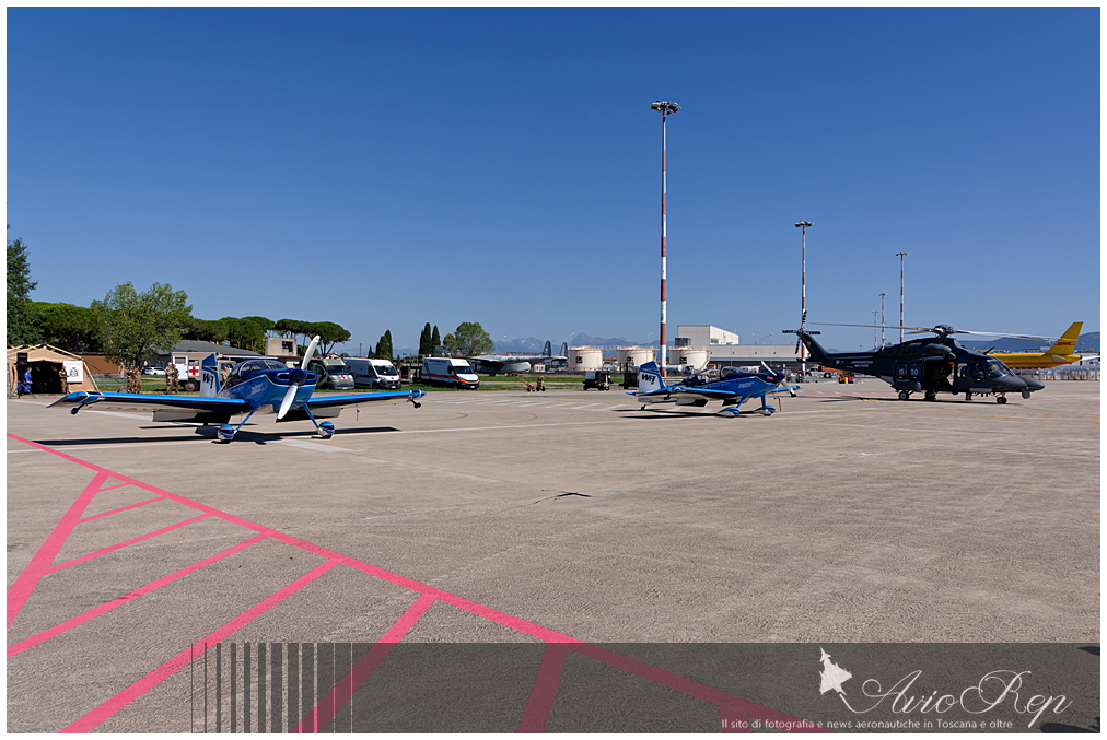 La pattuglia WeFly condivide il parcheggio con lo HH-139 del 15° Stormo dell'Aeronautica Militare