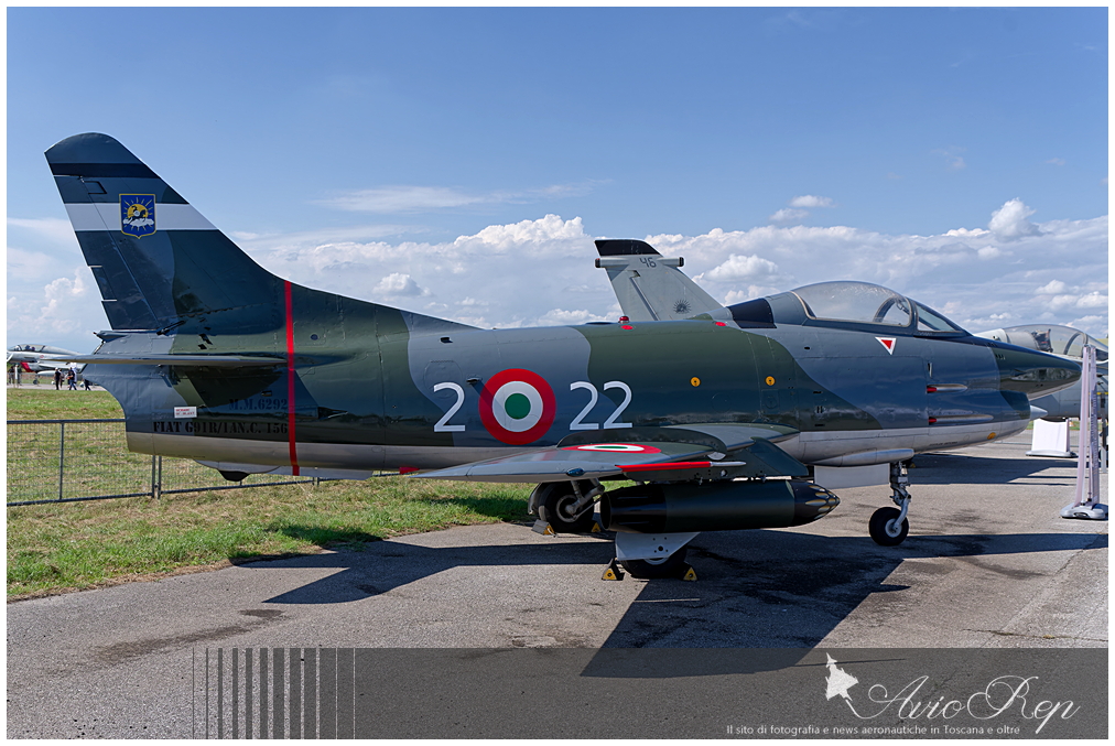 Tra i numerosi velivoli conservati a Rivolto, questo G-91R/1A nei colori del 2° Stormo, velivolo utilizzato dal 1964 al 1991 quando lo Stormo era ancora di base a Treviso