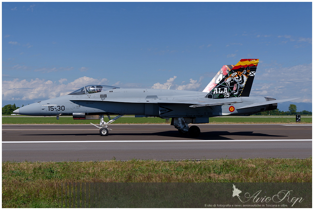 La colorazione della deriva dell'"Hornet" spagnolo non da adito a dubbi sulla propria appartenza al "Tiger Club", l'esclusiva associazione che riunisce buona parte dei reparti NATO che hanno come simbolo la Tigre e che organizzano tutti gli anni il "Tiger Meet"